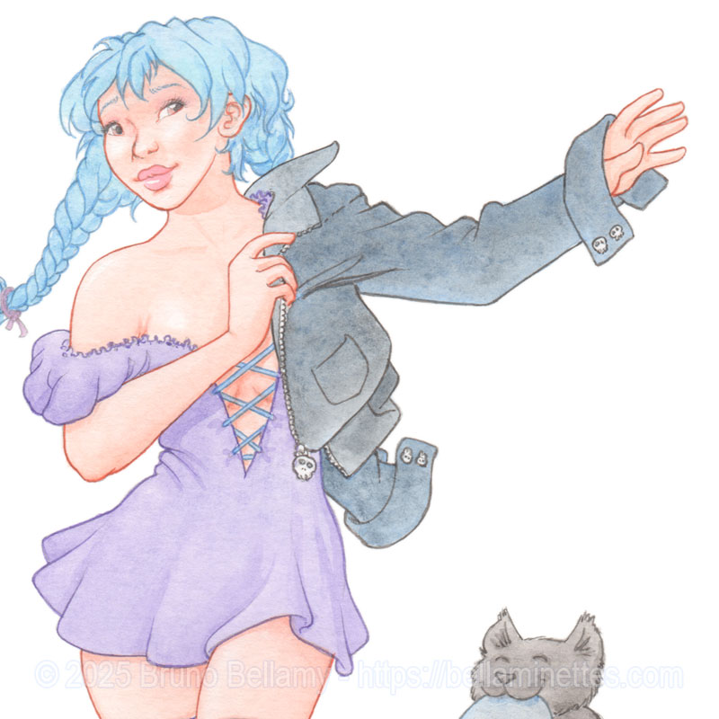Posté le dimanche 2 novembre 2025 à 19 h 18 min dans la catégorie « Aquarelle, Cosplay, Couleur, Croquis, Gros plan, Humeur, News, Preview, Tipeee » par Bruno Bellamy.