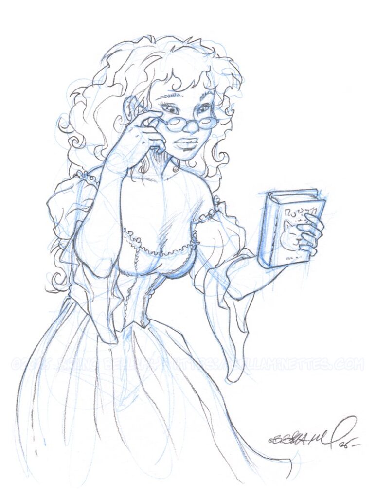Crayonné abouti de ce qui sera la bellaminette du mois pour, heu… les tipeuses et tipeurs de février ! Oui je sais chuis pas en avance, mais ça progresse ! 😉