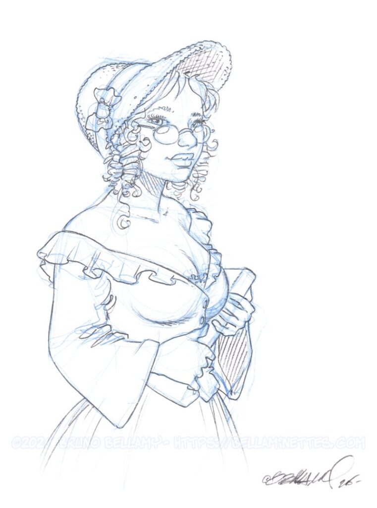 Ainsi nommée parce que ça aurait pu être (je trouve) le portrait d’une héroïne de J. Austen, qui donnait souvent son propre prénom à certains de ses personnages… 😉